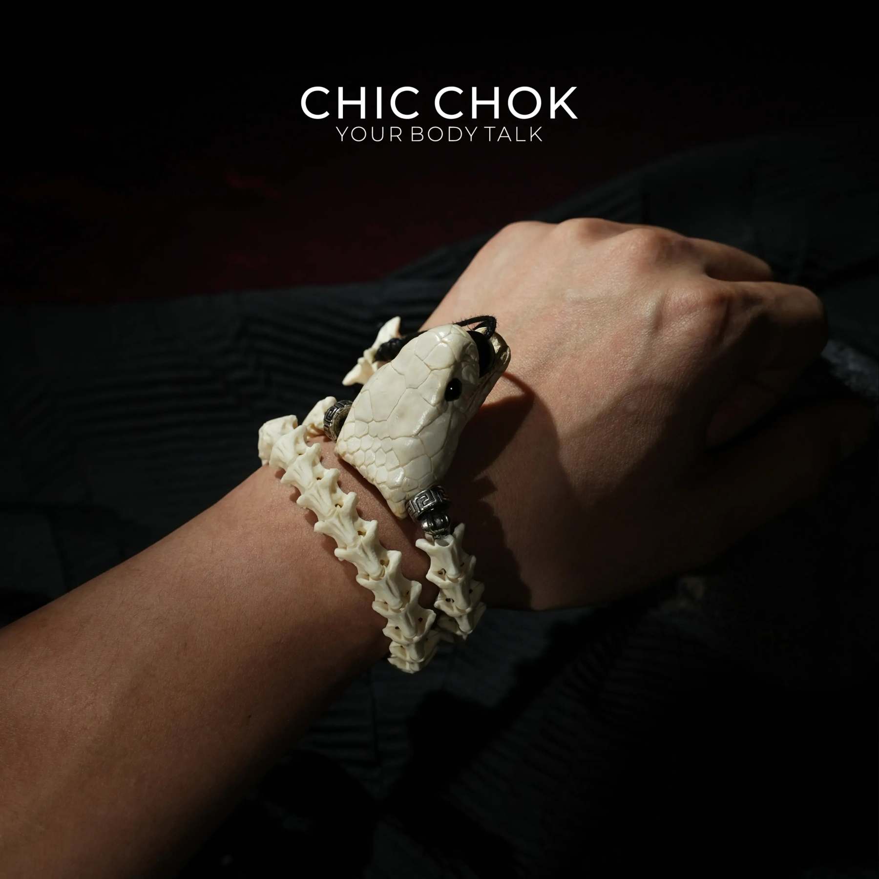 • Snake Head Tension: The three-dimensional snake head commands attention—its scales rendered with such precision they appear to breathe, golden pupils gleaming with icy sharpness. The design where the “snake's mouth” holds a black bead creates a dangerous yet alluring aesthetic interaction, instantly capturing the gaze;